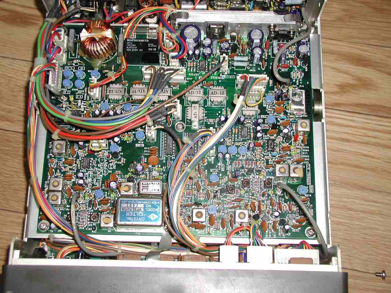 在籍していたCBのクラブには、伝説がありました。 NASAと違い変調は、大人しいのに滅法飛ばす無線機が ある、オオフナとは違う、アマ機みたいなAM変調でも無 い伝説のCB機があったとの事。 その伝説のCB機は漁船用無線機を改造したCB機だった と聞かされたことがありました。 特に昔の漁船用無線機は、クリスタル制御だったので改造 も簡単に出来たと思います。 その事がずっと頭から離れずに何時か手に入れたいと思っ ていましたが、やっと手に入れる事が出来ました。 現在のパワー合戦に対してアベレージが在るとは、思えま せんが、綺麗な27MHzの電波とおまけじゃ無く元から AM使用可になっている無線機は、漁船用だけ思います。 海で陸地との通信がこの無線機だけだった訳ですから、信 頼性や耐久性は言うに及ばずだと思います。 25W機ですがドライブは2sc2395を使いファイナ ルは2sc1763を使ってあります。 また、某氏が作成したのCB帯ROMが入ってありますの でFCC帯や300の周波数に出る事が出来ます。 内部の様子1 内部の様子2 古野製安定化電源 |