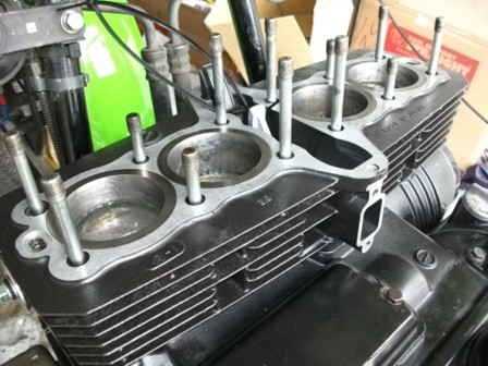 シリンダーヘッド乗っかりました。ここは簡単。ナットとボルトはもちろんトルクレンチ使用です。