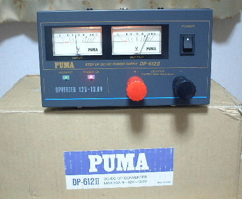 乗用車などは電圧が一定では無く、アンプなどを使用した場合に電圧が下がってしまいます。アンプの出力が低下するのはもちろんの事、トランシーバの動作が不安定になってしまいます。そこで登場するのがDP−612Uです。12Vを13.8Vまで持ち上げてくれます。出力は60Aです。本当は120Aのが欲しいのですけどね・・・